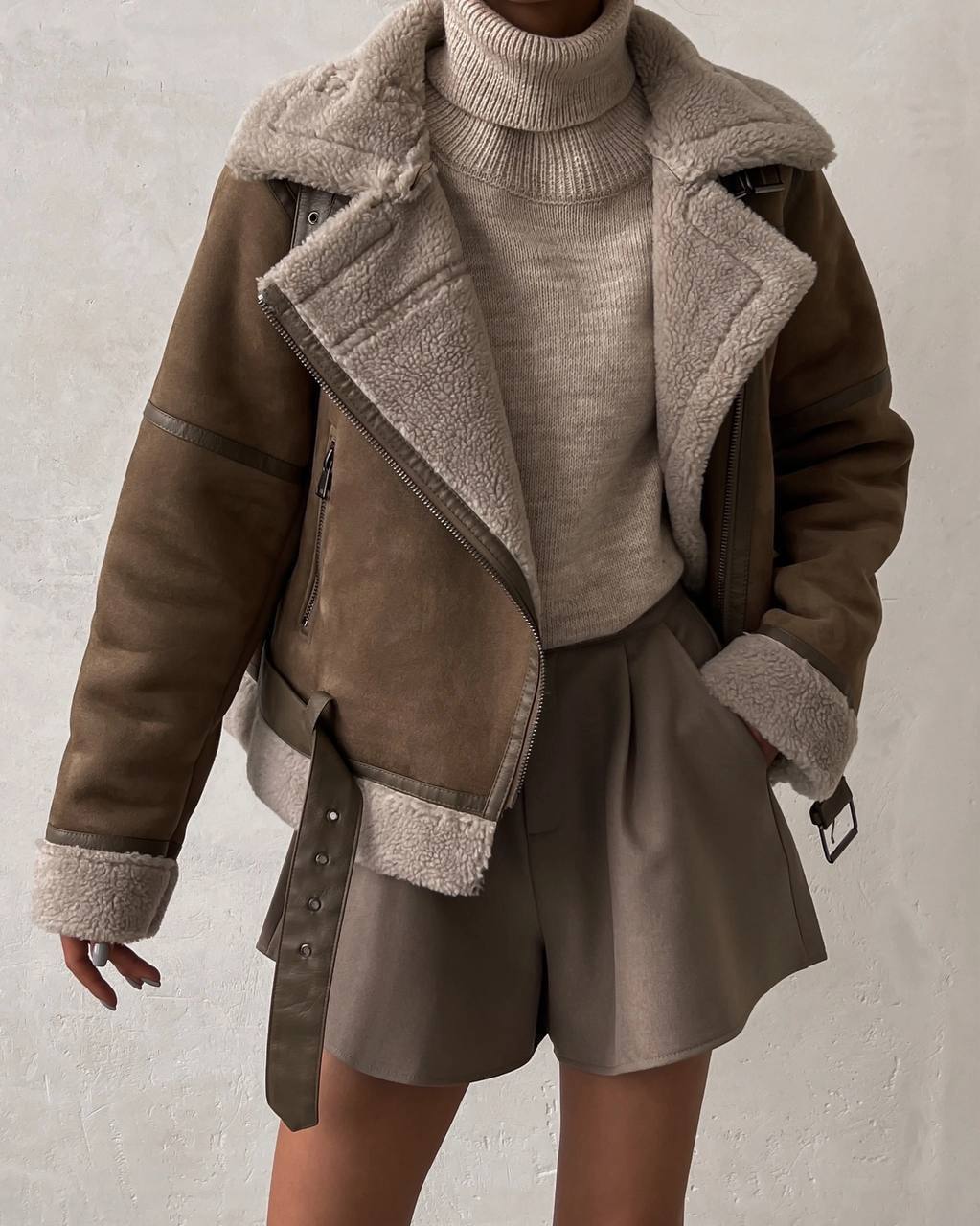 Представляем горячий тренд 2026 - модный oversize авиатор! Эта куртка пилот - стильная кэжуал вещь на осень, зиму, весну и демисезон для высоких и низких девчонок, а также беременных женщин, которым нужна трендовая одежда для каждого сезона. Бежевая, белая и черная асимметричная дубленка косуха с искусственным утеплителем, молнией и поясом, дополнена белым эко мехом, который придает ей особенный дизайн. Нежные светлые цвета экозамши и лаконично темные тона экокожи добавляют этой дубленке большей универсальности и возможностей для экспериментов со стилем. Премиальный экомех и качественная шерсть чебурашка позволяют создавать актуальные зимние, весенние и осенние женские образы с брюками или штанами, под спортивные кроссовки и холодную погоду; большой свитер и кожаные джинсы, под молодежные аутфиты и демисезонные луки – классическая теплая прямая и укороченная дубленка прекрасная альтернатива тедди курткам, идеально подходит для прохладных весенних и осенних дней, так и для холодной зимы. Утепленная современная косуха дополнена необходимыми акцентами для создания большего комфорта, удобства и стиля: ремень можно оставить свободным или застегнуть для акцента на бедрах; мягкая, легкая меховая опушка делает воротник функциональным и защищает от холода; серебряная молния выигрышно смотрится на оверсайз куртке и не перетягивает на себя внимание; короткая молодежная дубленка из эко кожи мягкая и приятная на ощупь, что обеспечивает комфортное ношение в любое время года. Эта куртка имеет oversize крой, который позволяет свободно двигаться и создает модный и стильный аутфит. Дубленка подойдет как для повседневного образа, так и для особых случаев. Не упустите возможность приобрести эту стильную и модную куртку по выгодной цене! Доступные размеры 42 и 44, 46, 48. Кроме того, наш бутик предлагает: вещи из замши и кожи; качественная замшевая верхняя одежда, спортивные куртки и многое другое представлено в нашем каталоге. Заказывайте сейчас и добавьте больше стиля в свой гардероб!